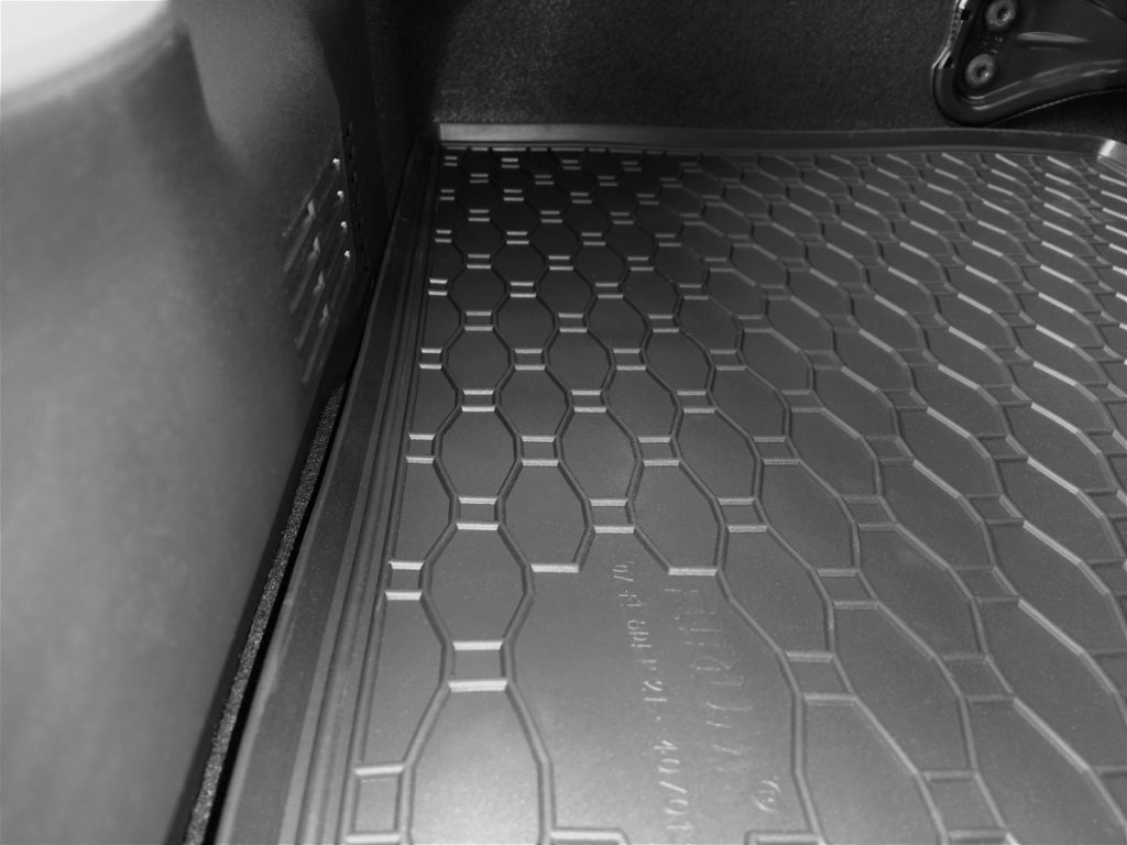 Praktisk och snygg bagagerumsmatta Fiat 500e från 2021- och framåt. Tillverkad i gummi, med extra hög kant för att skydda bilens original textilmatta från fukt, smuts och vätskor.