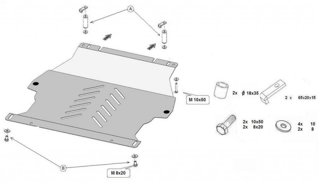 Montering sker mycket enkelt, då hasplåt Chevrolet Trax monteras i original fästpunkter på din bil. Monteringen sker helt utan åverkan på din bil och kan återställas till originalutförande om så önskas.