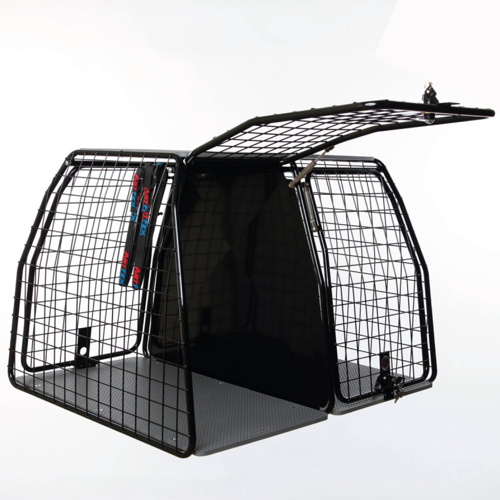 En tyst, säker och mångsidig universal bur för transport av hund i bil med många genomtänkta detaljer. Vid montering av buren bestämmer man vilken sida i bilen buren ska placeras.