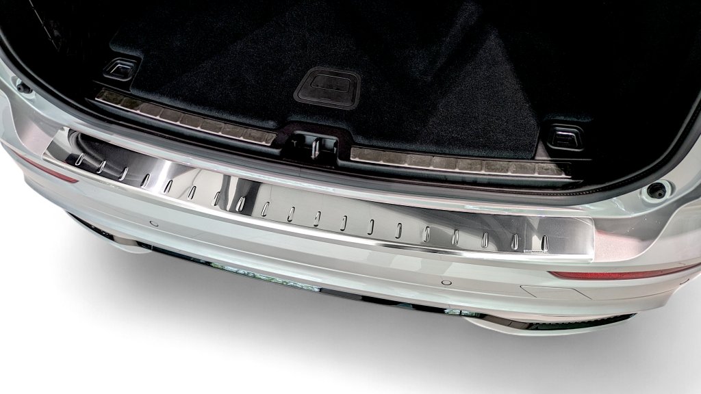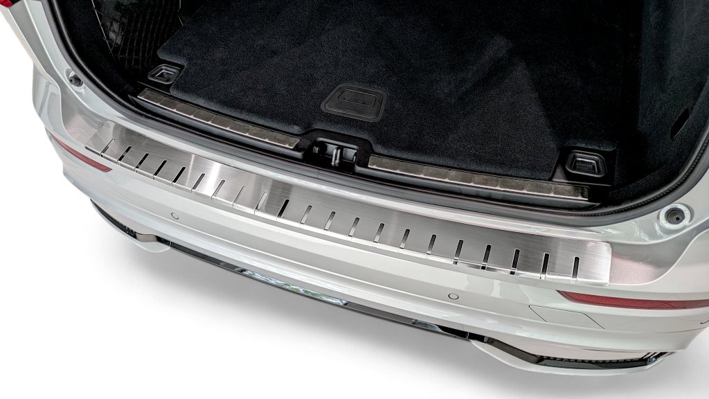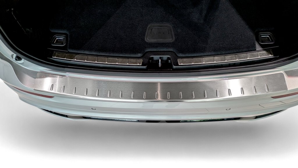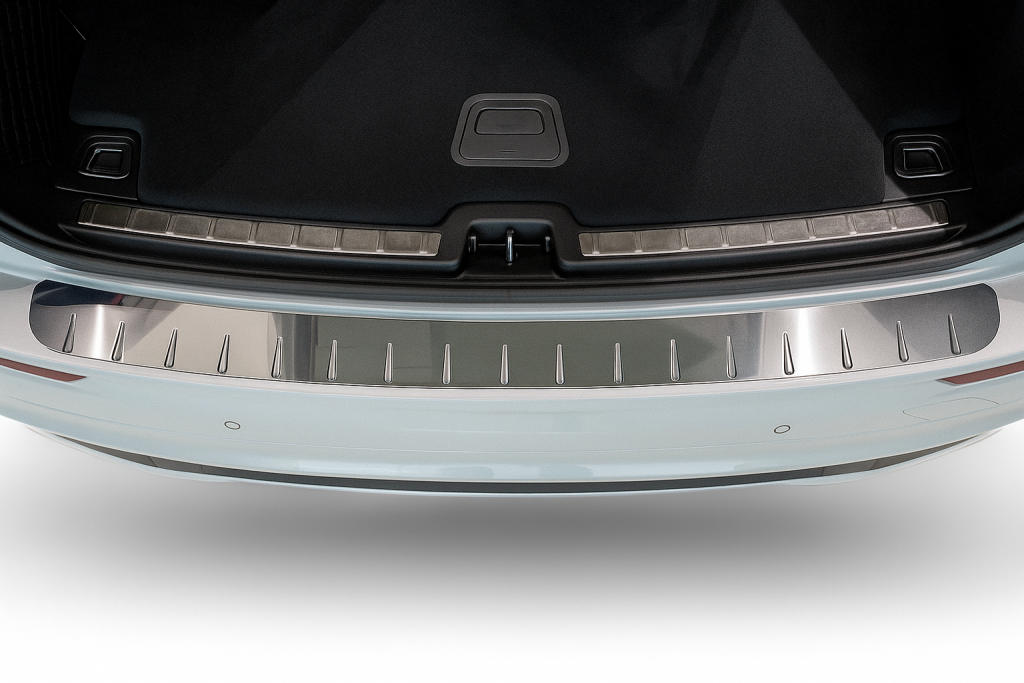Skydda bakre stötfångaren på din Volvo XC60 med ett elegant och slitstarkt lastskydd i Rostfritt stål. Detta tillbehör är designat för att kombinera praktisk funktion med ett stilrent utseende, samtidigt som det effektivt skyddar bilen mot repor, stötar och slitage vid i- och urlastning.