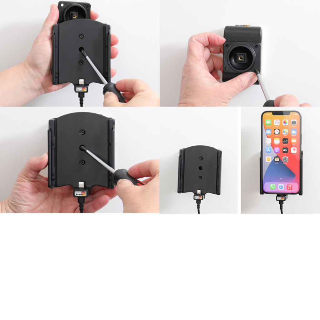 Aktiv hållare (med laddare) till din telefon, perfekt passform från kända Brodit som under många år tillverkat telefonhållare.