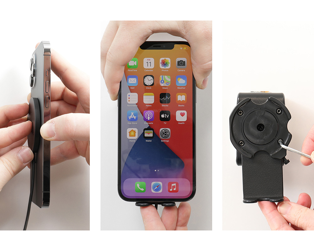 Denna Brodit Magsafe-laddare för iPhone passar dig som vill kombinera laddning, bekvämlighet och en snygg installation i bilen. Observera att produkten inte är kompatibel med MagSafe-enheter som används med ett vanligt skal eller skin utan en särskild MagSafe-ring. För bästa resultat monteras hållaren på en ProClip monteringsplattform.