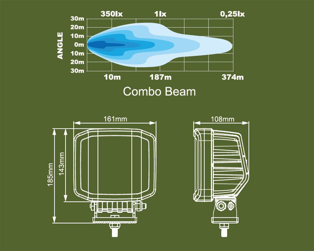 - Kombinerad ljusbild (combo) som erbjuder både lång räckvidd och bred belysning