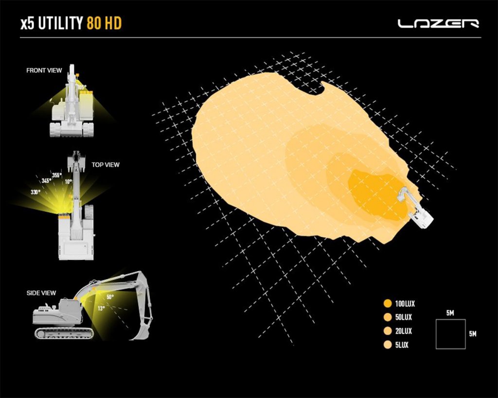 Lampans högeffektiva dioder med en noggrant utvald färgtemperatur minskar ögontrötthet vid långvarig användning och ger optimal definition. Med en robust konstruktion, en "okrossbar" polykarbonatlins och omfattande certifiering är Utility-80 LED-arbetslampa byggd för att hålla och prestera under de tuffaste förhållandena.
