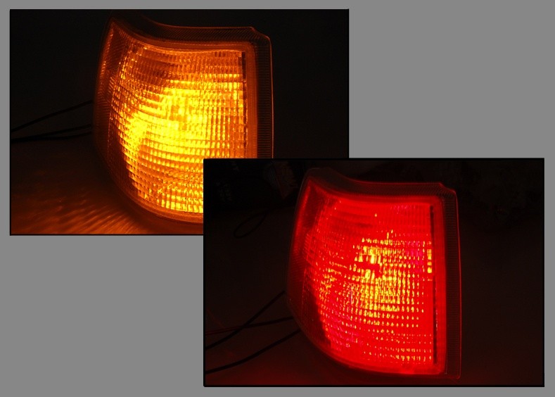 Diodlampa kombinerad rött med blinkers/rött positionsljus. Lämpligt till USA-importerade bilar, med kombinerad blinkers- och positionsljus.