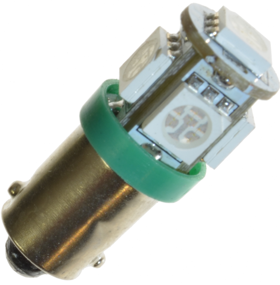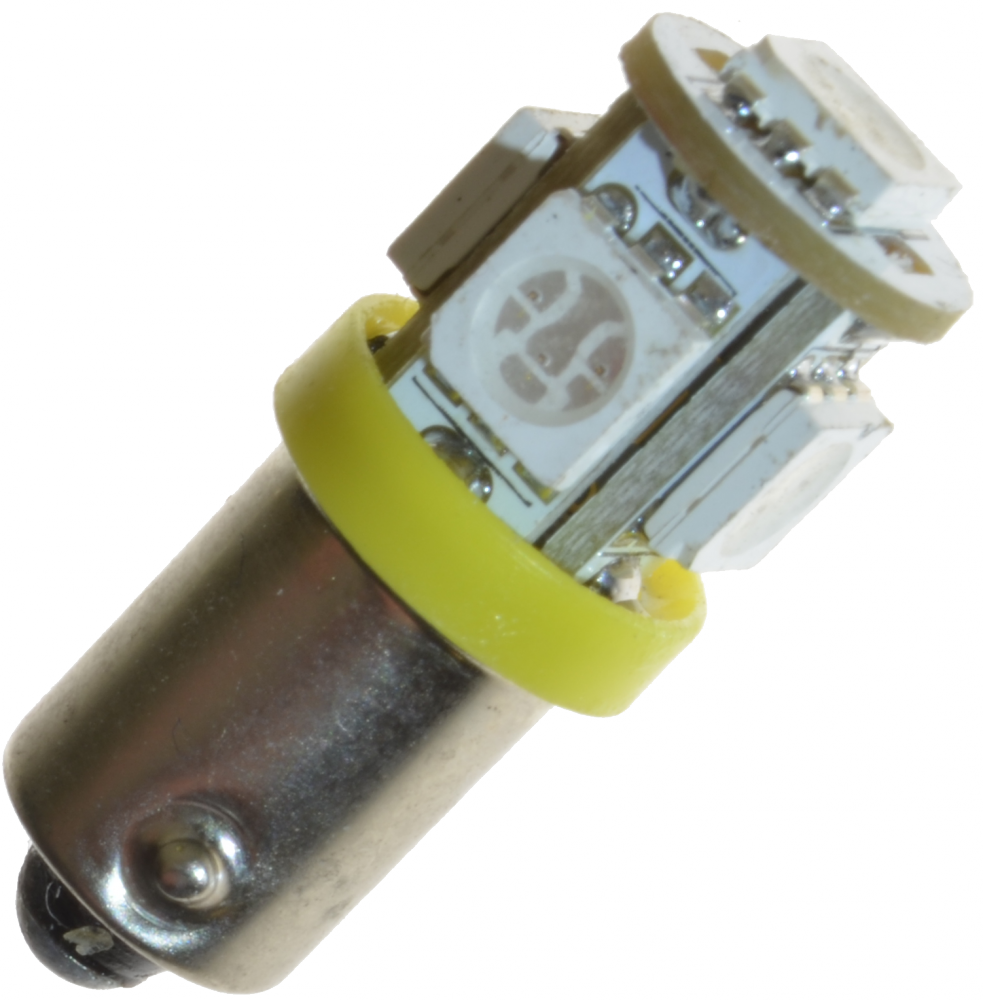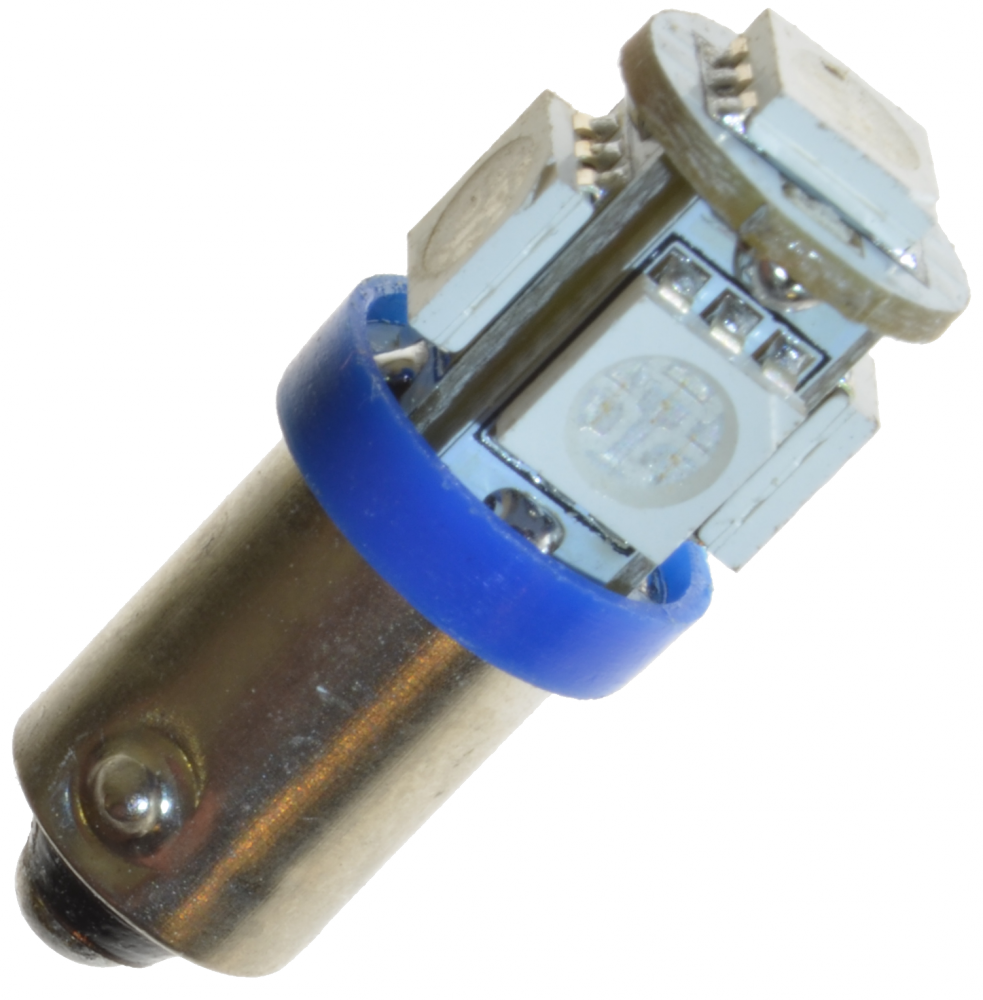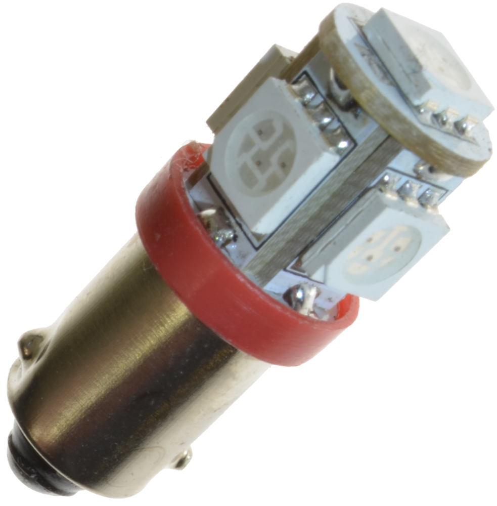 Diodlampa med 5 dioder av den nya högeffekts typen med 3 chip. Sockel BA9s (lilla metallsockeln 9 mm i diameter).