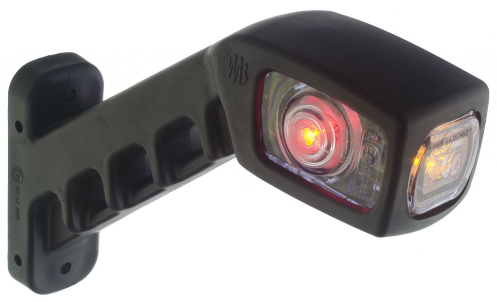 Positionsljus med dioder integrerade i en gummifot. I foten sitter dioder med 3 olika färger - Vit, Orange och Röd. Lyktan är E-märkt (E20). Drivs på 12-24 V och avsedd för utomhusbruk. Glasen är transparenta.