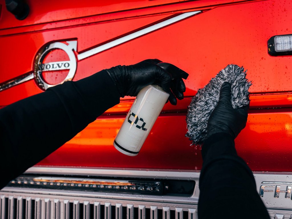 Säkerställ att lacken inte är varm innan tvätt, skölj isåfall av lacken så att den blir sval innan du schamponerar med S1. Spraya S1 1-2 gånger direkt i en blöt tvätthandske/svamp. Schamponera sedan panel en panel i taget Skölj av varje panel direkt för att schampot inte ska torka in. Rinse and repeat. Doppa handsken/svampen i en hink med rent och kallt vatten mellan varje panel så att den alltid är så ren som möjligt inför varje schamponering. Tips från coachen är att alltid ha mycket vatten tvätthandsken när du schamponerar för att ytterligare minimera risken för tvättrepor.