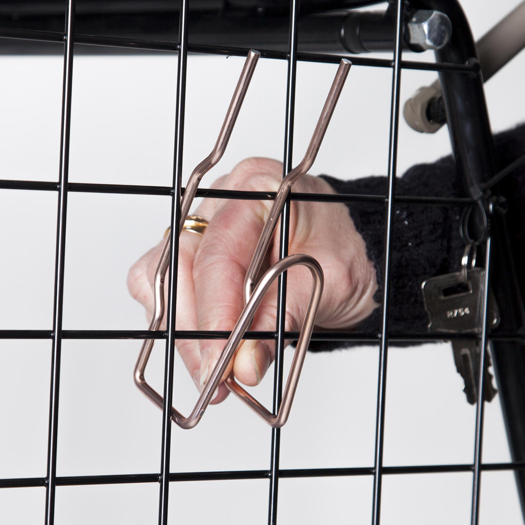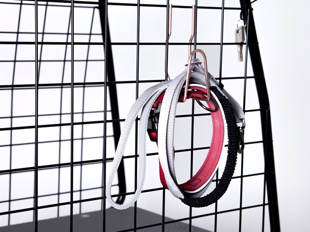 Krokar för enkel upphängning av t.ex. koppel och löplinor. Enkel och snabb montering.