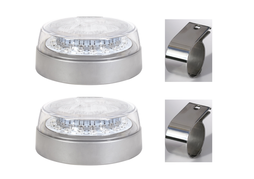 I följande Extraljus-Box ingår 2 st Lightfix LED100 24V med klart glas. Tillsammans med lamporna levererar även två klämfästen i Rostfritt stål samt monteringsplattor.