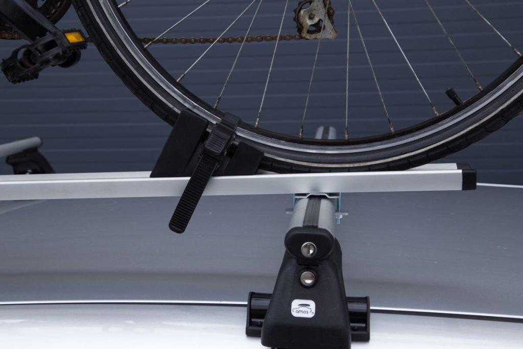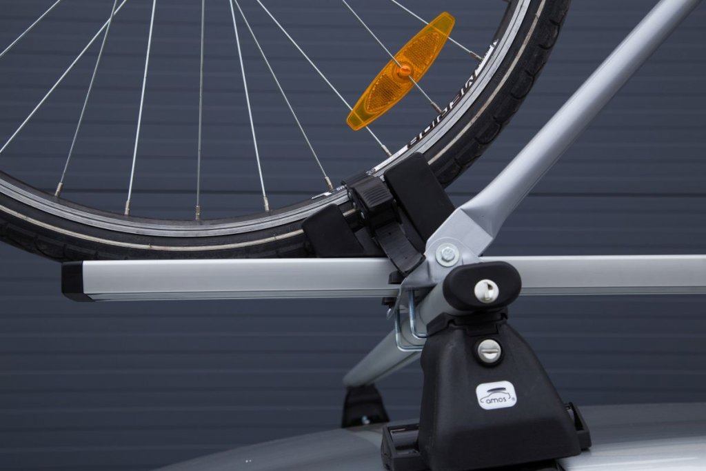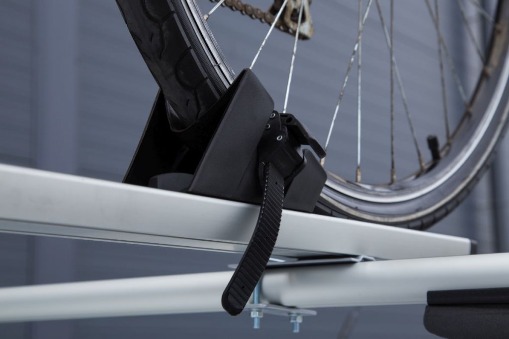 - Snabb och enkel fastsättning av cykeln, tack vare det smidiga vredet på låsarmen tillsammans med låsbanden för hjulen