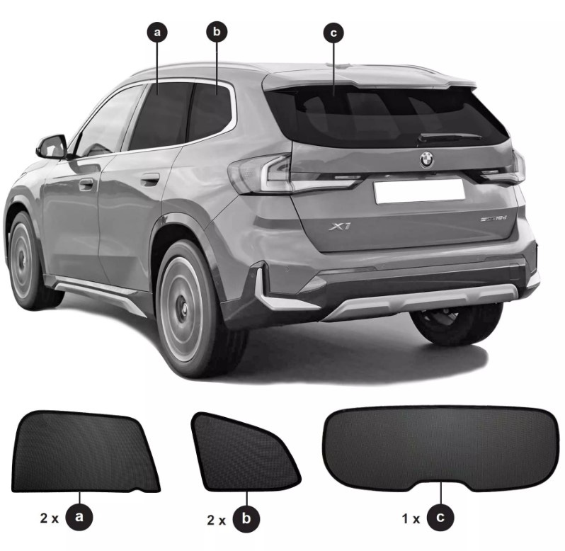 Sonniboy solskydd BMW X1 från 2023- och framåt för bak- och sidofönster ger det bästa möjliga skyddet mot värme och insyn i din bil.