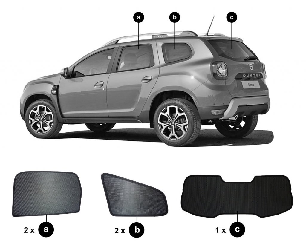 Sonniboy solskydd Dacia Duster från 2018-2024 för bak- och sidofönster ger det bästa möjliga skyddet mot värme och insyn i din bil.
