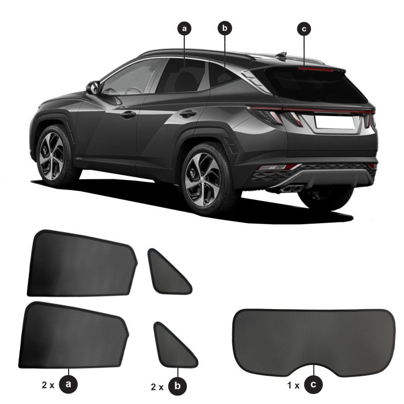 Ge din Hyundai Tucson, modeller tillverkade från 2021 och framåt, det ultimata skyddet och komforten med Sonniboys innovativa solskydd. Dessa modellanpassade solskydd är designade för att exakt passa bilens bakre fönster, vilket säkerställer en komplett och estetiskt tilltalande täckning oavsett karosstyp.