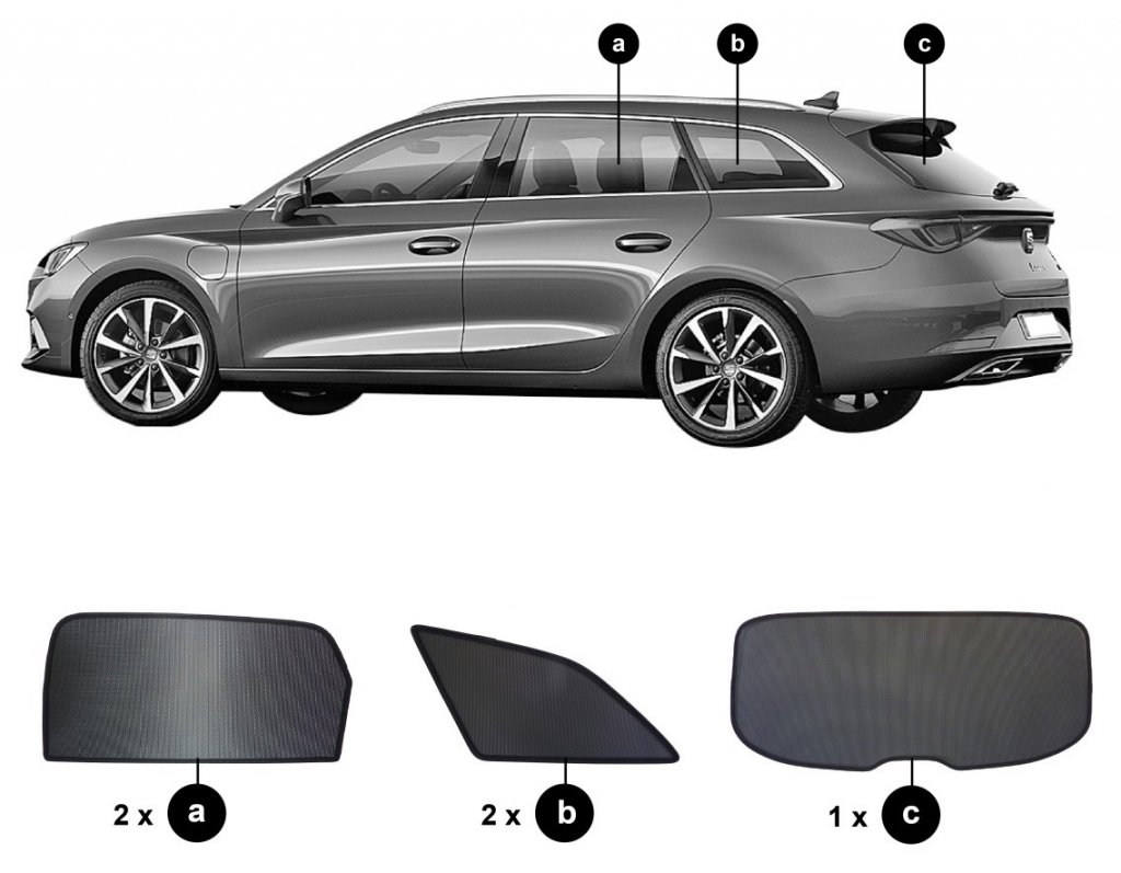 Sonniboy solskydd Seat Leon från 2020- och framåt för bak- och sidofönster ger det bästa möjliga skyddet mot värme och insyn i din bil.
