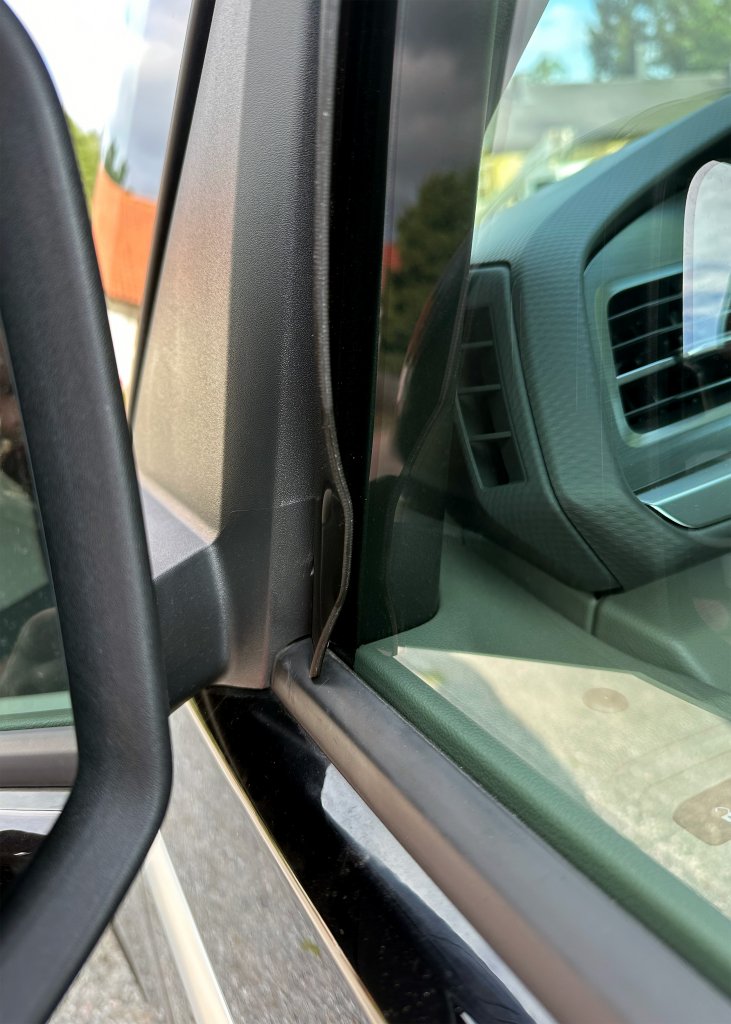 - Monteringen sker i sidorutans rutram tillsammans med ett clips som skruvas fast vid sidobackspegeln infästning för att hålla vindavvisaren på plats. Vindavvisare Volkswagen Multivan T7 monteras i sidorutans rutram.