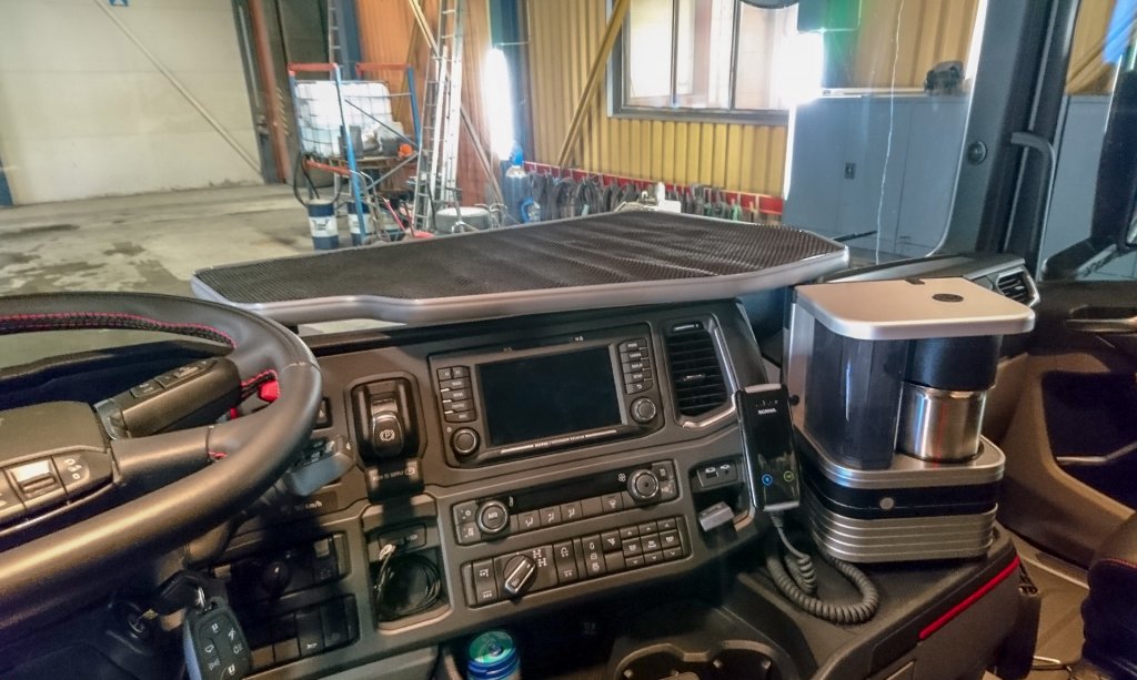 Det stora bordet är specialutformat för att passa perfekt i din lastbil Scania R & S och förvandlar din instrumentpanel till en imponerande och praktisk arbetsstation. Den medföljande antiglidmattan ser till att alla dina verktyg, papper och elektronik ligger säkert på plats även under körning. Perfekt för lastbilschauffören eller alla som spenderar mycket tid i sin lastbil och behöver en rejäl arbetsyta.
