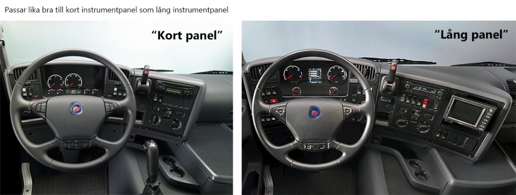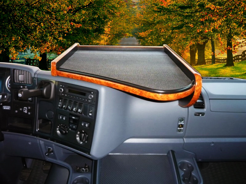 Praktiskt lastbilsbord för montering på instrumentpanelen, snett framför förarplatsen i Scania R-serien från 2004-2009.