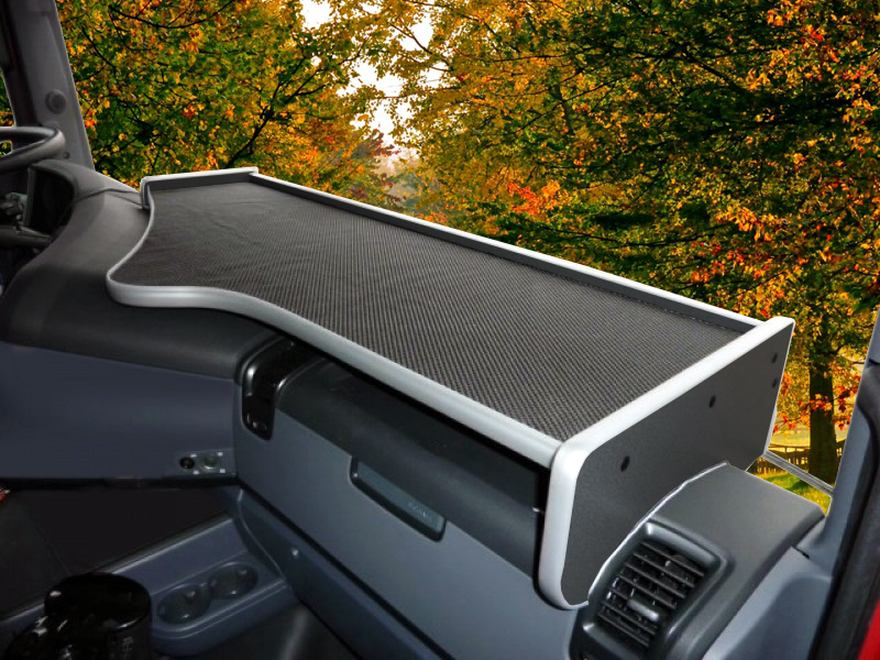 Praktiskt lastbilsbord för montering på instrumentpanelen, hela vägen från förarplats till passagersidan i Scania R-serien och Streamline från 2010-2016.