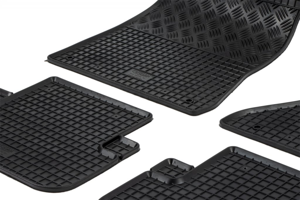 Snygga och praktiska gummimattor med upphöjda kanter för att effektivt skydda bilens original golvmatta från fukt, smuts och vätskor.