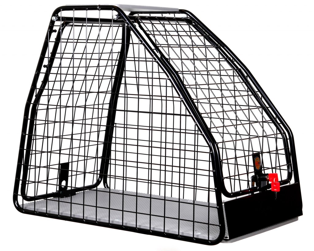 En tyst, säker och mångsidig universal bur för transport av hund i bil med många genomtänkta detaljer. Vid montering av buren bestämmer man vilken sida i bilen buren ska placeras.