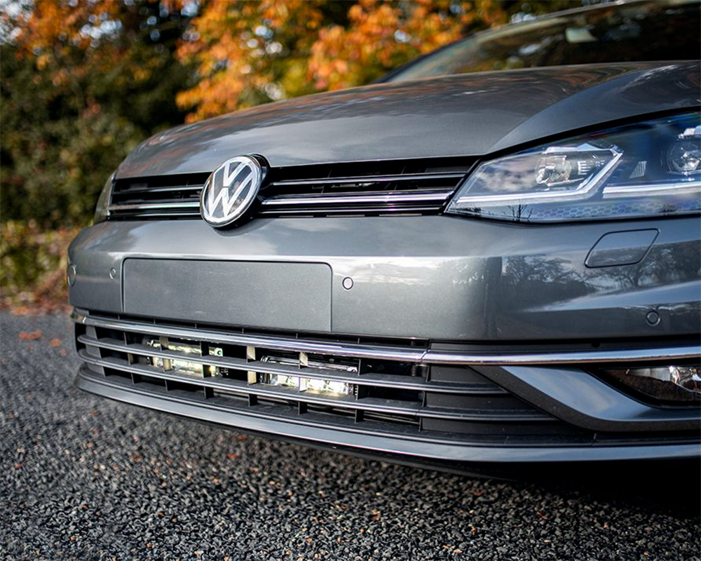 Modellanpassade fästen för ledramp / ledramper från Lazer. Specifikt framtagna för montering bakom grillen på Volkswagen Golf från 2014-2019.