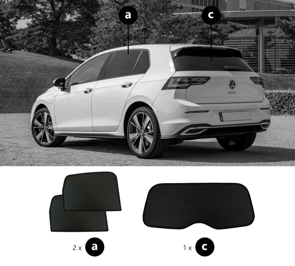 Solskydd Volkswagen Golf levereras som komplett sats för bakdörrarna, sidorutorna i bagageutrymmet och bagageluckan.