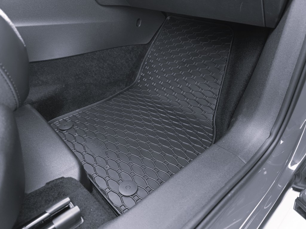 Snygga och praktiska gummimattor med upphöjda kanter för att effektivt skydda bilens original golvmatta från fukt, smuts och vätskor.