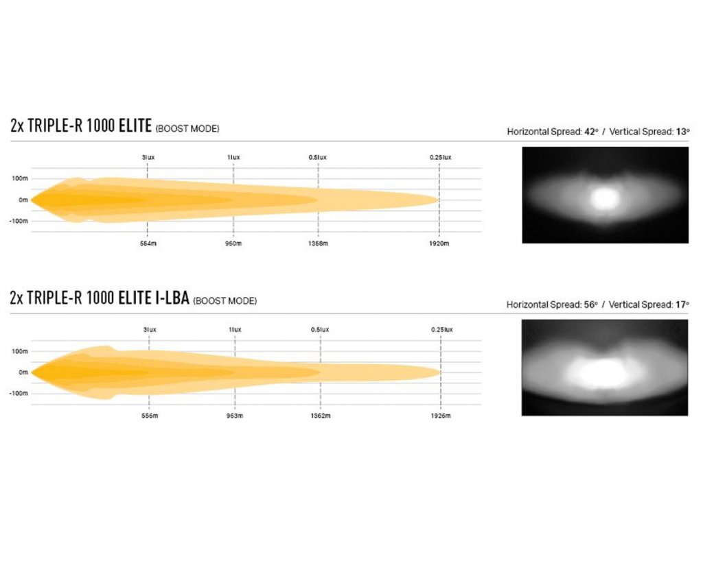 | Räckvidd (0,25 lux) | 1732 meter | 1920 meter |