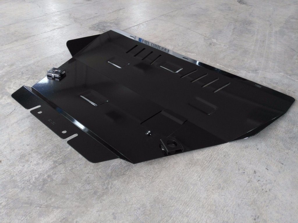 Hasplåt för motor & växellåda Framtagen för att skydda motor och växellåda från skador. Tillverkad i 2 mm stål som svartlackerats för ett bra rostskydd.
