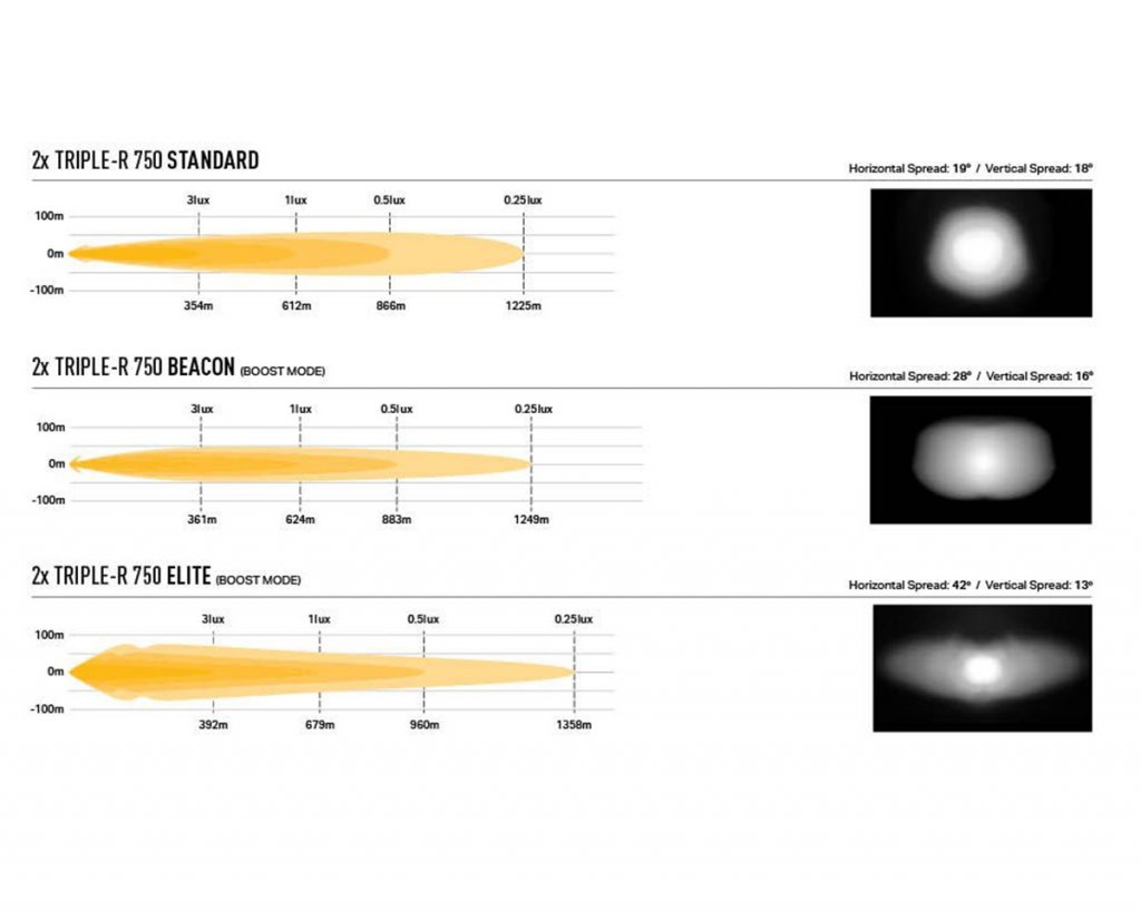 | Räckvidd (0,25 lux) | 1225 meter | 1358 meter |