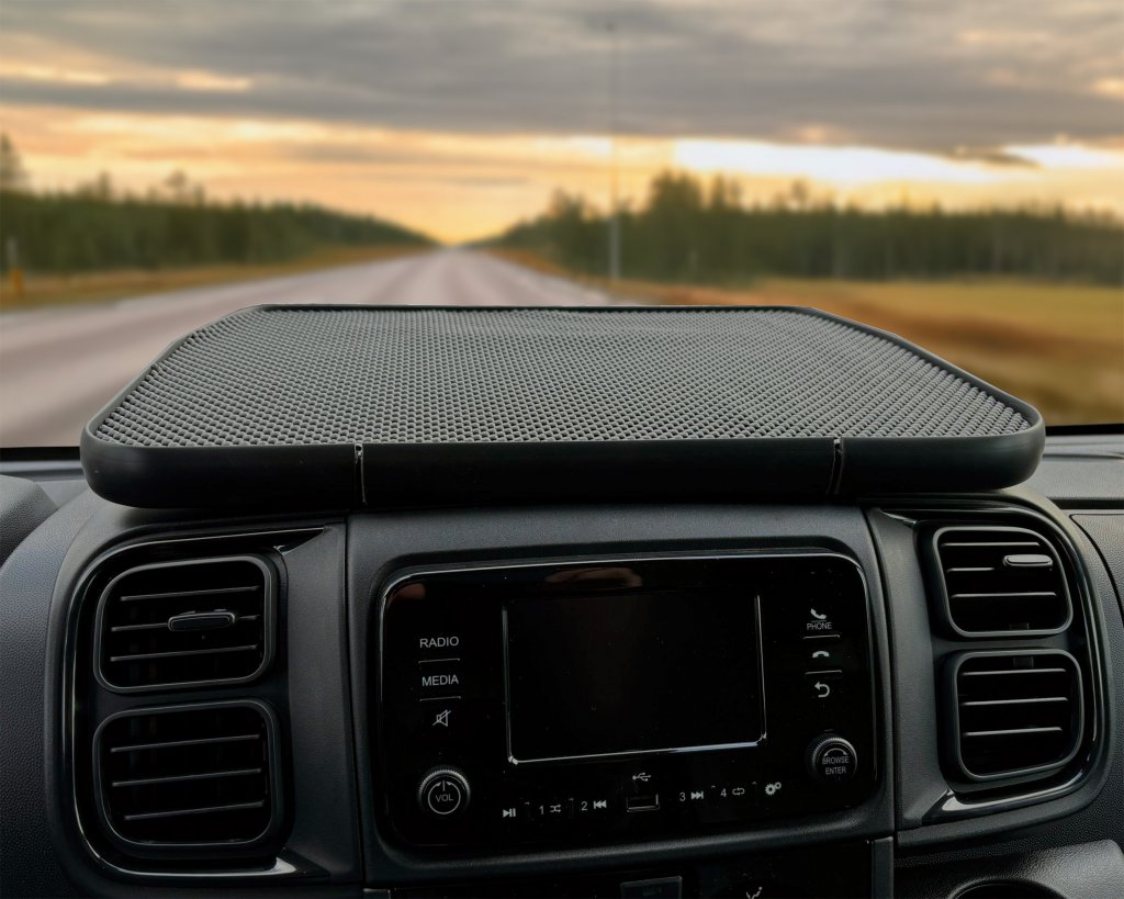 Detta bord är specialdesignat för att passa perfekt i din Citroen Jumper och ger dig en praktisk avlastningsyta för en mer organiserad instrumentpanel. Den medföljande antiglidmattan ser till att dina saker ligger säkert på plats under färden. För bilar med öppet fack på instrumentpanelen är bordet utrustat med en öppningsbar lucka, vilket ger enkel åtkomst till utrymmet under bordet.