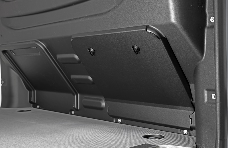 - Lägre ljudnivå – Insidan är klädd med ljudabsorberande textilfiber för att minska buller från lastutrymmet.