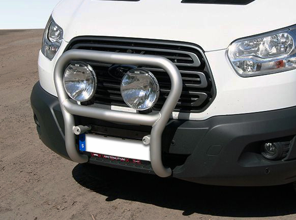 Frontbåge Ford Transit levereras som komplett sats, med extraljusfäste, monteringsdetaljer och monteringsanvisning.