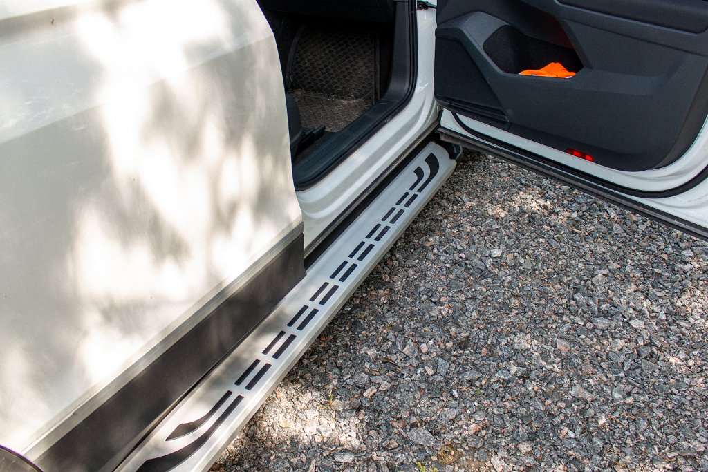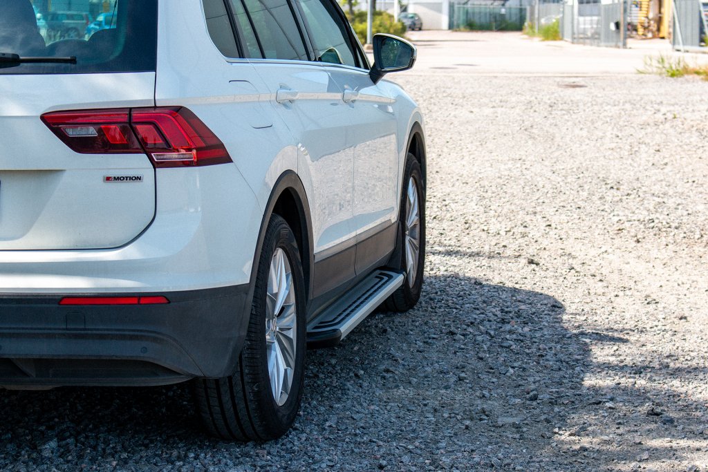 Monteringen sker enkelt med tillhörande monteringssats, specifikt framtagen för din bil för snabb och smidig montering. Monteringen tillåter dig att justera sidostegen i både längdsled och djupled för eget tycke och smak.