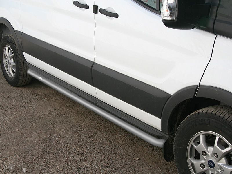 Sidorör Ford Transit från 2014- (längd L2) som både är funktionella och snygga. Rören är tillverkade i Aluminium med en naturanodiserad ytbehandling, vilket ger en silvermatt lättskött yta.