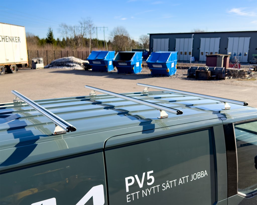 Våra kompletta takräcken för Kia PV5 Cargo har robusta aluminiumprofiler och ett smart, integrerat infästningssystem. Denna konstruktion tillåter enkel montering av diverse tillbehör över, bakom eller under profilen med standardiserade M8-sexkantsbultar. Detta gör takräcket exceptionellt flexibelt och användarvänligt för din Kia PV5 Cargo, vilket förenklar installationen av bland annat takboxar, rörhållare, lastkorgar och annan utrustning utan behov av tidskrävande klämlösningar.