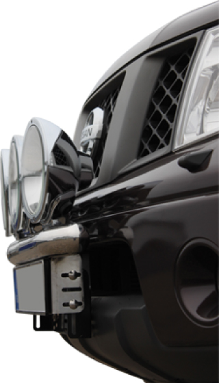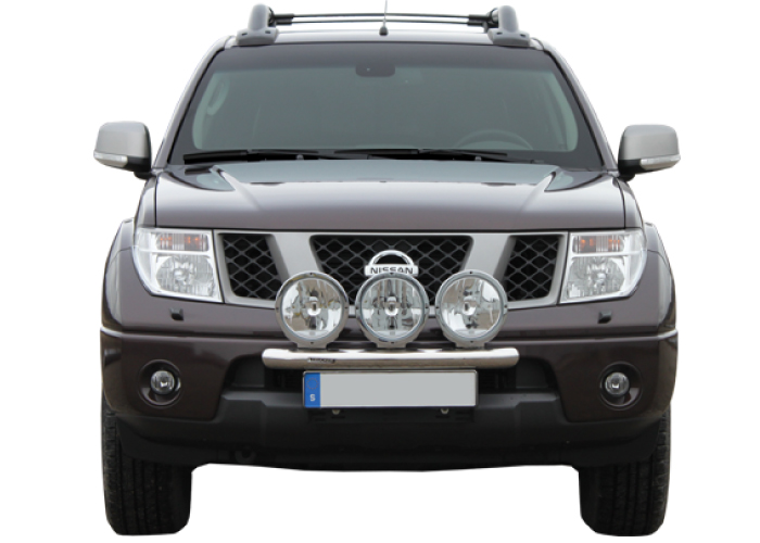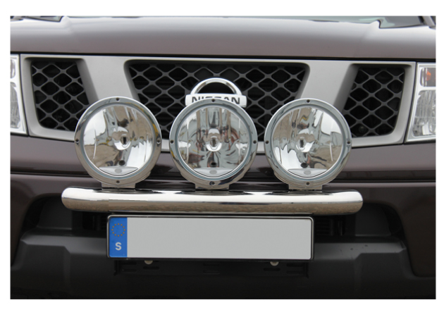 Extraljusfästet har plats för tre fullstora extraljus (235 mm). Fästpunkterna för extraljusen är infällda i bågens rör och låter dig justera djupet. Fästet är också justerbart i höjdled för att ge valfrihet i placering. Vårt extraljusfäste till Nissan Navara är designat för att sitta tajt mot bilens front, samtidigt som det är justerbart för placering efter smak.