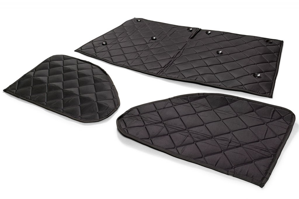 - Genom att täcka vindrutan och framdörrarnas glas reduceras värmeförluster under kallt väder och stoppas solvärme vid varma temperaturer. Detta minimerar behovet av konstant uppvärmning eller AC