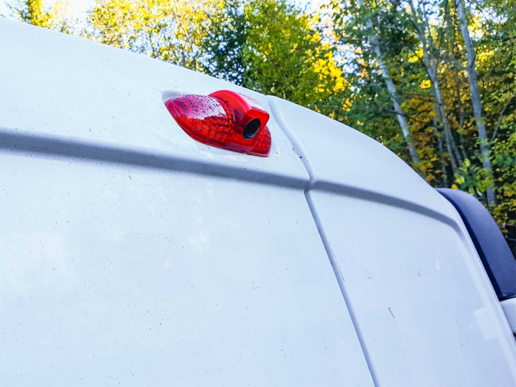 Enkel och snygg montering då det 3e bromsljuset ersätts med denna modul. Bromsljus och kamera kombinerat för montering i Opel Vivaro.