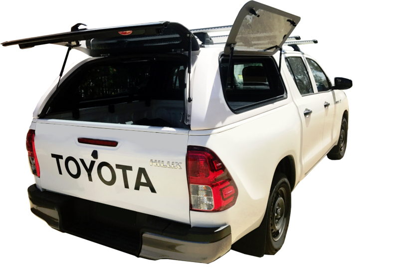 Du kan hitta liknande produkter härFlakkåpa som är hytthög och med öppningsbara mörka rutor. Framtagen till Toyota Hilux (Dubbelhytt) från 2016-