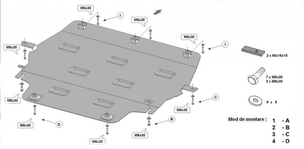 Funktionell och skyddande hasplåt till Toyota Proace från 2016-. Hasplåten är tillverkad i stål som pulverlackerats svart och montering sker i original infästningspunkter.