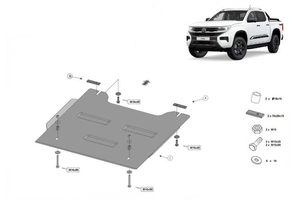 - Hasplåt Volkswagen Amarok från 2023- och nyare: Anpassad för optimal passform och skydd.
