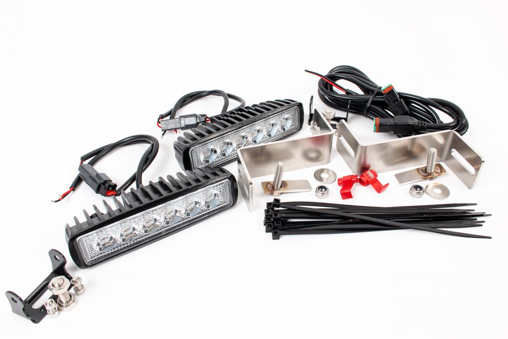 Dessa erbjuds med följande backlampor; Backljus 9022-A18 vilket är en slimmad men mycket kraftfull arbetsbelysning på vardera 18W och 1620 lumen. Ljusbilden är flood (bred ljusbild), och med patenterad kondensventil motverkas kondensbildning inuti backljuset. Ytskiktet av polyesterpulverlack skyddar effektivt mot oxidering av aluminiumhuset.