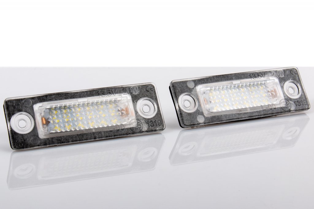 Xenonvit skyltbelysning till Volkswagen Caddy från 2004-2010, 2010-2015 samt faceliftmodellen från 2016-2020. Ersätter bilens gula skyltbelysning med modern, ljusstark och helvit LED-belysning. Hela 18 SMD-dioder, vilket ger ett kallvitt sken.