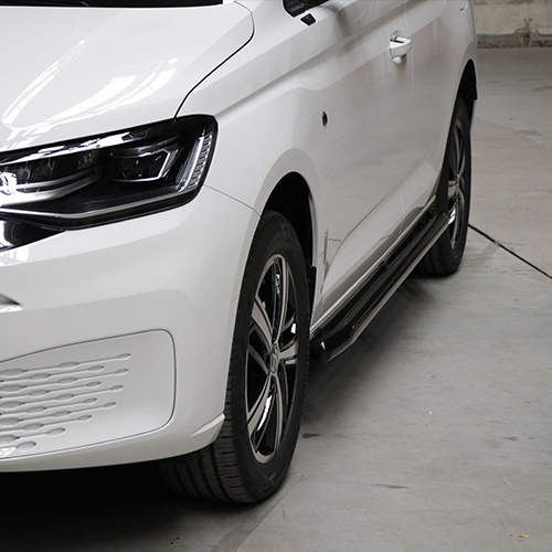 Du kan hitta liknande produkter härSnygga sidorör med nedböjda ändar till Volkswagen Caddy från 2021- och framåt. Sidorören är tillverkade i Rostfritt stål, och finns med tre olika ytbehandlingar: