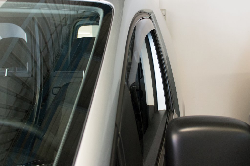 - Monteringen sker helt ingreppsfritt utan verktyg. Vindavvisare Volkswagen Caddy monteras i sidorutans rutram utan några clips eller skruvar.
