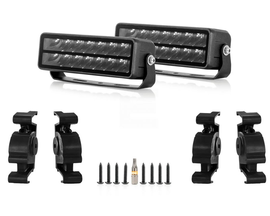 Detta grillkit är skräddarsytt för att ge en diskret och elegant montering. Till skillnad från universella lösningar som ofta sticker ut, är detta kit speciellt anpassat för Volkswagen Crafter för en perfekt passform och en look som ser fabriksmonterad ut. Lamporna har ett kombinerat ljusflöde som ger dig både bredd för att lysa upp vägkanterna och en imponerande kastlängd på över 800 meter för sikt långt fram. Detta gör paketet idealiskt för körning på varierande vägar. Monteringen är enkel och kräver inte att grillen demonteras.