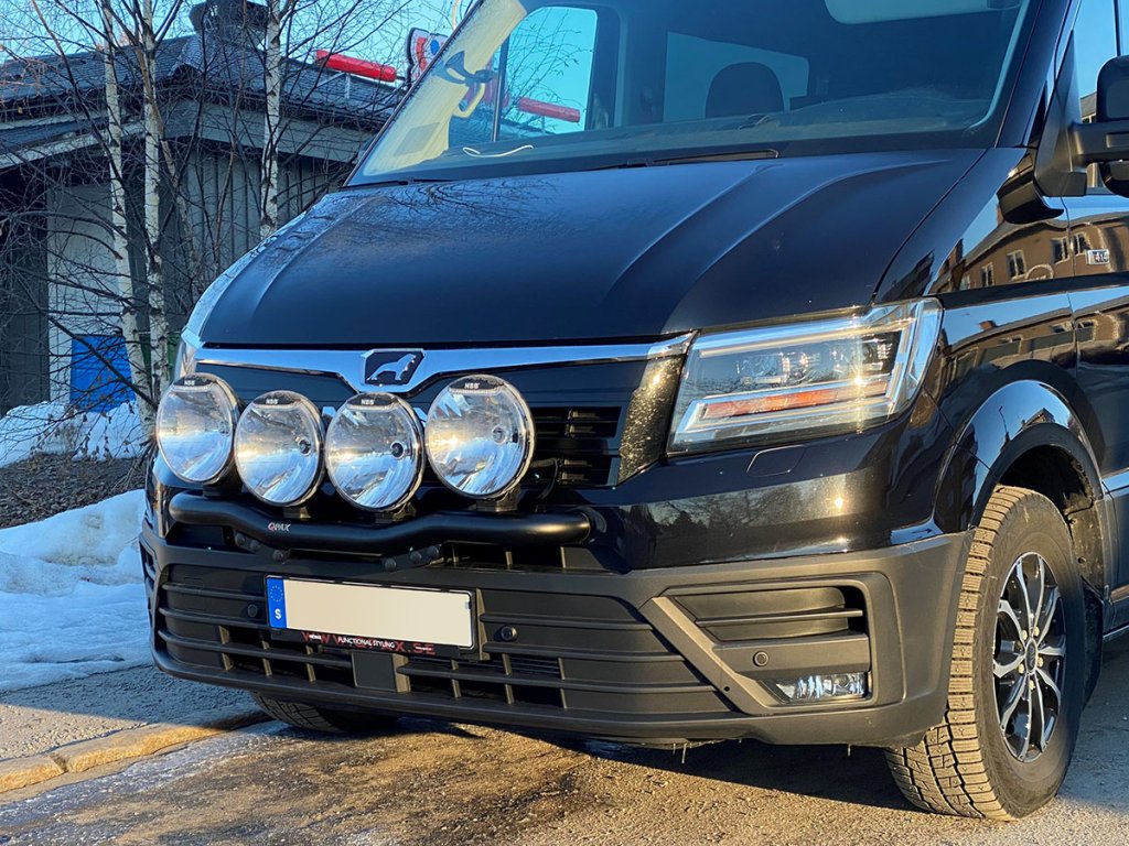 Stabilt extraljusfäste i Aluminium till Volkswagen Crafter från 2017- och framåt. Fyra svetsade fästen för extraljus ger ett stabilt montage för dina extraljus.