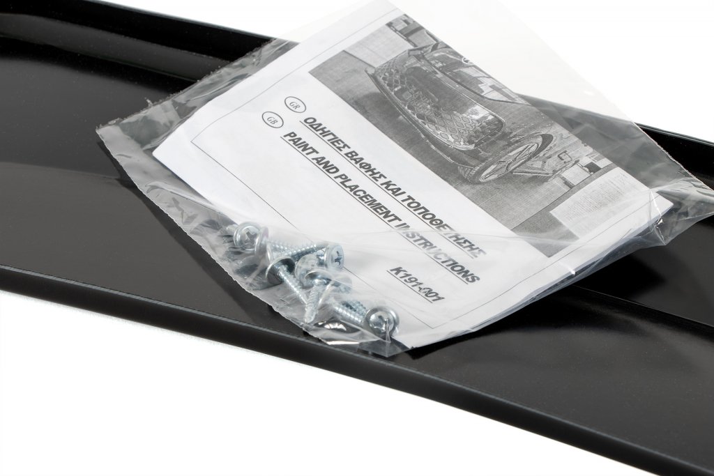 Frontsplittern är tillverkad i ABS-plast, vilket garanterar både hållbarhet och flexibilitet. Den monteras med självborrande skruv under den främre kofångaren, vilket gör installationen smidig och snabb.
